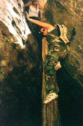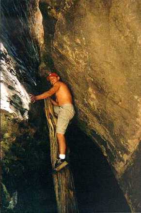 The second option was what you see Eric doing here...wedge yourself between the rocks and "chimney" to the bottom...I do not reccomend this. Did you know that none of us even knew that he was above us?! I don't even think he knows that this picture was taken but it's pretty cool don't ya think? One of my fave!