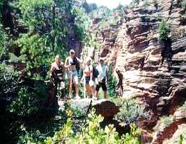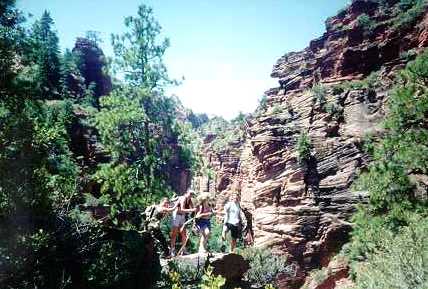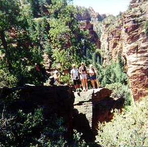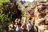 Well...when we got to the end of the trail and saw that it led straight into the bottom of the canyon, we also noticed that Norm and Joe were no where to be found...they must have gone ahead. Eric was sweet enough to stay behind and help the ladies down the steep loose rocks.