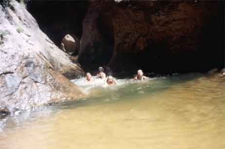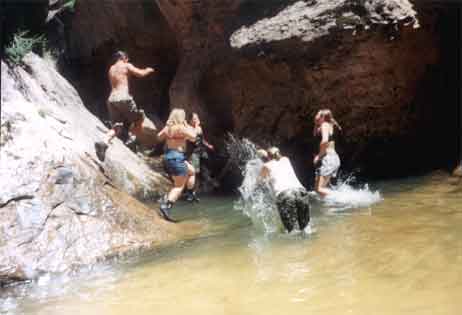 From left to right you see Joe, Michlle, Cherri, Me and Heather jumping into the first REAL swimming hole.