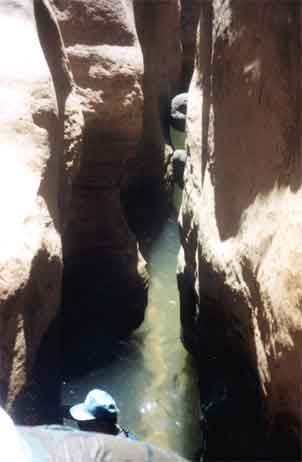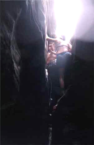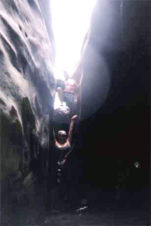 I like this pic! It's me in the bottom holding up the rock long enough for Roger to climb safely to the bottom. I can dream right?