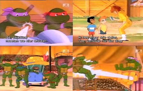 To make matters complicated for the search groups, 2 small boys find the Fragment. April tries to bribe them with 3 dollars, while the turtles are delayed when mistaken as fancy-dress entertainers. The turtles try to raise money to make a more desirable offer to the kid’s, but Shredder cruelly steals it from the boy’s.
