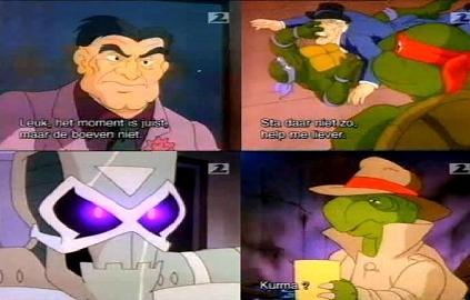 When the turtles are figuring who is the cause of the robber, there is one of those lines said from the turtles that remind people this only a cartoon, to give something else for the viewer to chuckle about. After Leonardo thinks it may be Shredder and Krang, Donatello comes out with "Krang and Shredder aren't in this episode!". It's true, but really not that funny. It may even let down the first-time viewer that the regular villains are not present for the whole 22 minutes!