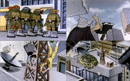 BRIEF STORYLINE: First to the turtles lair, Splinter admonishes Michaelangelo for over-eating when, out of the blue, everyone starts leviatating towards the ceiling.