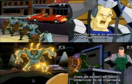 The turtles track down the ninjas to an abandoned aircraft hangar and observe their strange leader, who calls himself Megavolt. The turtles hope to crash the party and finish this whole crime gang off, but they realize Megavolt is too powerful, and so try to allign themselves with him become a member of their gang. He accepts!