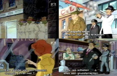 When Tony Vivaldi and his gangsters come to the antique store threatening the dealer for the Maltese Hamster, it's badly edited but has a good choice of music. The gangster's capture alleged elimination of the turtles is executed well. The capture of Raphael is one of the better parts of the episode. Meanwhile, the capture of Leonardo, Michaelangelo and Splinter is quite good.The best thing about this episode is the mystery of why the Maltese Hamster is so popular all of a sudden, and the solving of this caper by Donatello. A bit different in TMNT standard storylines. Plus, the alarming rate of the turtles getting caught and their last hope Donatello could've been killed by the falling rubble caused by the gangster's laser guns.