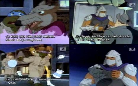 TMNT REVIEW HQ COMMENTS: Quite a bad episode for this cartoon. However a nice start, with a unique technique. It features the turtles in the streets in their trenchcoats and hats. Donatello's voice is actally narratting the thoughts in his mind, in this tough street-wise drawl. It's like they are copying a detective or mafia film.This occurs throughout the episode, and makes this episode much to remember about.