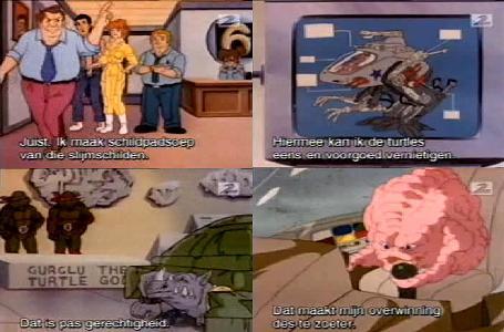 Casey Kellerman is not a bad character, but could’ve been more humorous when attacking the turtles on who they are. His talkshow presenting reminds me of Morton Downey Junior’s talkshow from the late 80s in the US, which could have been the inspiration for this episode. Seeing the defeated Krang sliding out of the broken robot and showing his true physical downturns is comical as Shredder soon has to save him. Bebop does like a “role-reversal” in one scene, charging at the turtles shouting “Warthog Power!”, which the turtles do usually shouting turtle power. It’s a decent episode but the quite dark “turtles-as-outcasts or freaks” theme makes it stand out a little better than other episodes of similar quality.