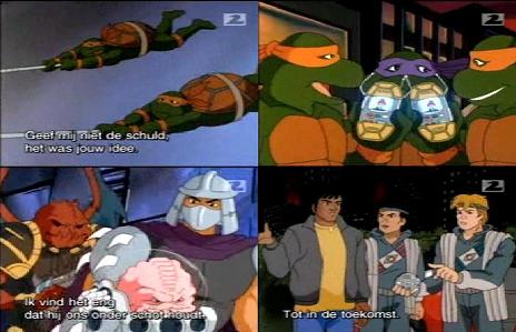 BRIEF STORYLINE: Carter, April and the turtles from the past are confronted by very menacing giant robots. They eventually manage to escape, and the present weakenend turtles are successfully carried back to the lair. April takes the story public to the local authorities to warn them of Dregg.
