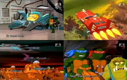The rogue gang called "The Wrecking Crew" are a decent, memorable bunch of villains that the turtles tackle in a scrappy segment. A very original idea, as you may've noticed or guessed that it is an ugly big green alien who has somehow had parts of his body dissected, and fitted with machinery to make up the rest of the body, there are 4 machines/members in total. On another interesting note, the spaceship the turtles and Gargon escape in, is rather much like the Neutrino's fancy flying car.