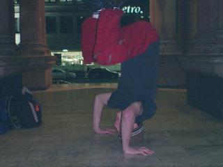 Left is B-boy squiggs doing a head s n at town hall for more pics go to the pix