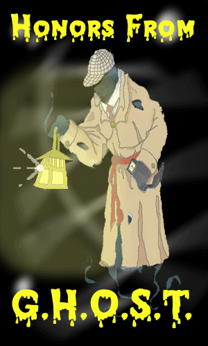 Now you can win the G.H.O.S.T. Web Site Award. This is not given to any site, only those with informative information, good site design, and plenty of active links within the site i.e. no dead links only links to the dead. OK bad joke but seriously we will consider every site that is well thought out. Even if you know a site that is deserving give us the web address and we may send them the award on your behalf.