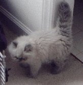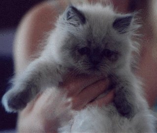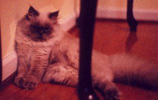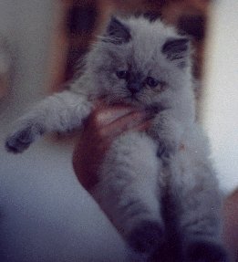which means his long hair is blue-grey & cream with brown on his face, ears, tail and feet. All Himalayans have blue eyes. They are a mix of a Persian and a Siamese. You can see the Siamese coloring on the face and hair of the Persian. |