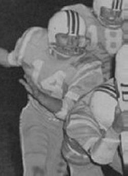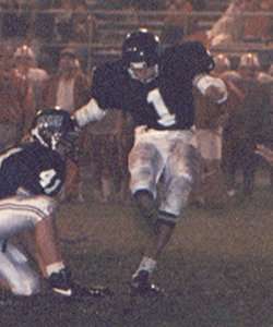 On a cold and rainy night in 1972, Rick Arms kicked his way into the Tornado record books. Using a "straight ahead" kicking style Arms kicked at 45 yard field goal in a 18-12 victory over Princeton High. |