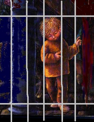 Hier siehst du, wie traurig Hänsel ist.