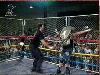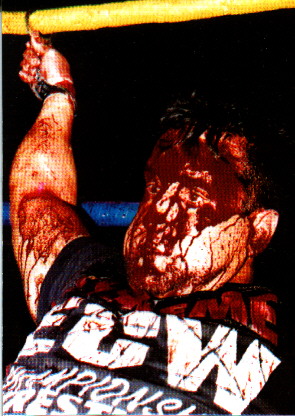 He quickly became one half of the ECW tag team champs with Johnny Gunn(Tom Brandi AKA Salvatore Sincere), but when Gunn got injured Shane Douglas replaced him and then double crossed him in a match against The Public Enemy costing him the belts.A brief fued with Stevie Richards and a big push in the company brought him into a BITTER fued with the SANDMAN, that seen him earn the Knickname , THE INNOVATOR OF VIOLENCE when he went BERZERK one night and delivered a shot to the eye with his own cane he nearly put the sandmans eye out.Of course Dreamer won in the end and this would propell him into the most violent fued in wrestling history with RAVEN.In 1995, Stevie Richards, started his old fued up with Dreamer, but this time richards said he had some back up in his hero Scott Levy. Levy , upon his arrival in the new EXTREME CHAMPIONSHIP WRESTLING, changed his name once again to RAVEN and he bacame the cold self loaving figure we know today.The angle was that Dreamer and Raven once fueded when they were kids in a summer camp, they fought for the love of ravens girlfriend, Beulah Mcgillicuty. THE CHAIRSHOT HEARD AROUND THE WORLD, HEATWAVE 95,ECW ARENA She was brought in as a destraction for dreamer,and done one hell of a job of it, one minute you would think that she was falling in love with dreamer then only to have her kick him in the family jewels. But when Beulah faked a pregancy to get out of Ravens nest and blamed it on tommy, the fued only got worse.A even more violent raven took his anger out on both tommy and beulah, he went as far as actually crucifing dreamer at the top of the ECW arena, and then doing the same to the Sandman for trying to help Tommy.But Tommy finally won the heart of beulah after he saved her from and attack by RAVEN.But then strange things started to happen at House Party 96 .Dreamer inlisted the help of Shane Douglas to fight Raven, but after douglas revealed a LESBIAN relationship between Beulah and Kimona Wannalayu, he turned on dreamer, of course this was around the time that douglas acquired the services of Francine.But Dreamer took both of them, but later to have Kimona turn and go back to RAVEN Raven then won the world title away from Douglas with the help of Brian Pillman, knowing that dreamer was the one man that could take that belt away from him, raven inlisted the services of Brian Lee and the Bruise Brothers to keep Dreamer out of his hair , and they done a damn good job, nearly killing dreamer.It go so bad that Dreamer inlisted the help of his mentor and idol and new father figure Terry Funk to help him .This fued seen some very memorble moments in ECW history like the night that Dreamer put Lee through a wooden door at the ECW arena, or when LEE choke slammed Dreamer through 4 Tables of the top of a 20 ft balcony . They even took turns hitting each other in the head with concrete blocks one night!!!!.The fued ended with the now infamous HIGH INCIDENT scaffold match between LEE and DREAMER at the ECW arena, that seen him throw lee off a 35 feet high scaffold into a stack of about 6 tables in 1996.Lee joined Shane Douglas and Chris Candido to reform the Triple Threat,Dreamer inlisted the help of the Pitbulls and evntually the Fued ended as Dreamer asked his Mentor and Father Figure Terry Funk to come out of retirement one more time to help him fight Lee and Shane Douglas at November To Remember 96.