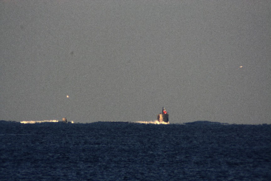 Returning home after patrol-duties far from home port, a submarine slips past the entrance of the bay and into home waters once again...