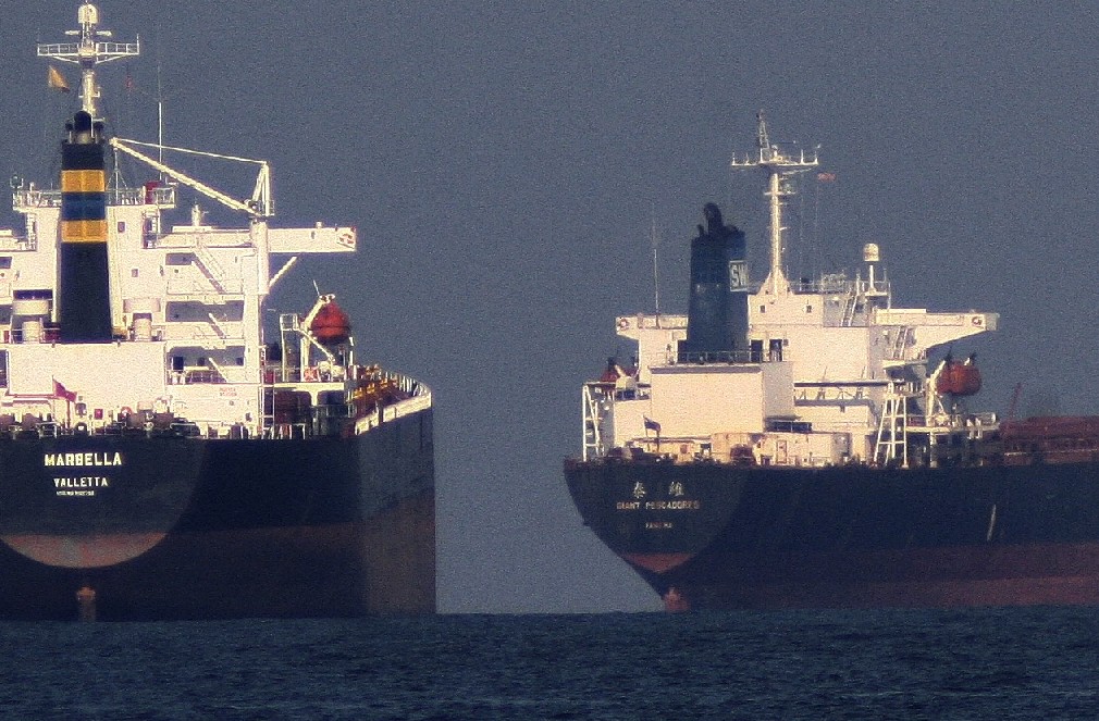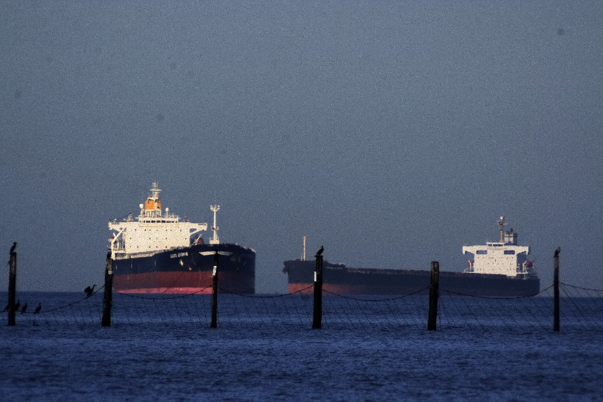 Two Tankers at anchor--the world comes to our doorstep...