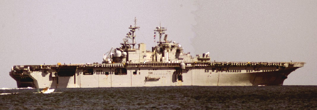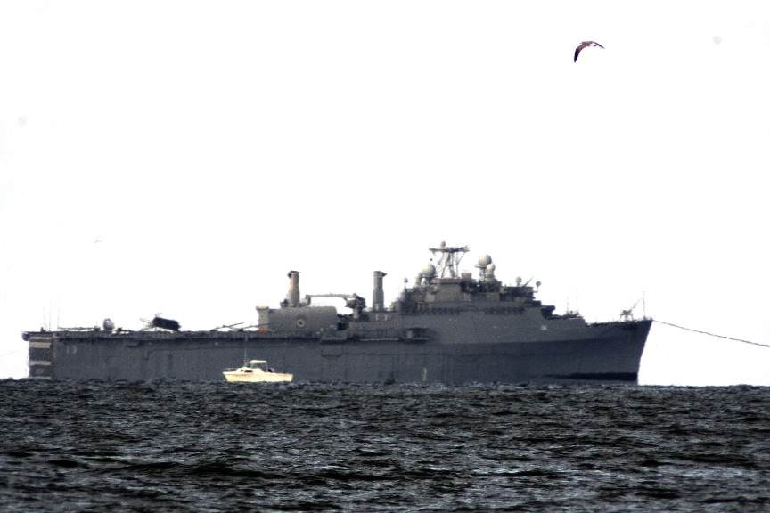 The USS Wasp, LDH-1, off the beachfront at 76th Street, heads for open water, and ???