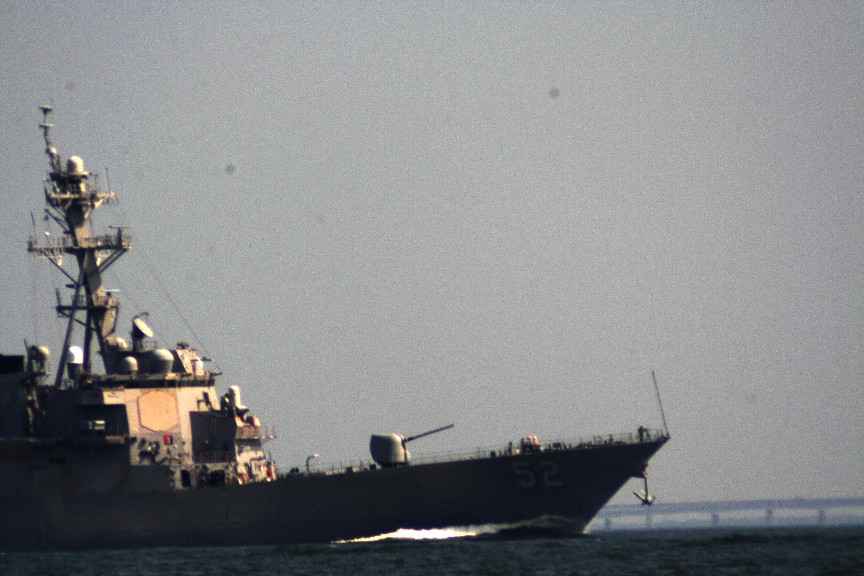 US Navy ships such as the destroyer USS MAHAN DDG 72 ply the waters of the ocean and bay in constant watchfulness over us all--God bless OUR Navy!