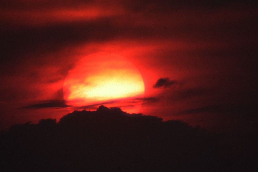 Silhouetted agains a crimson and purpled sky, one cannot but help imagine what other, more distant and perhaps more exotic sunsets, she has seen