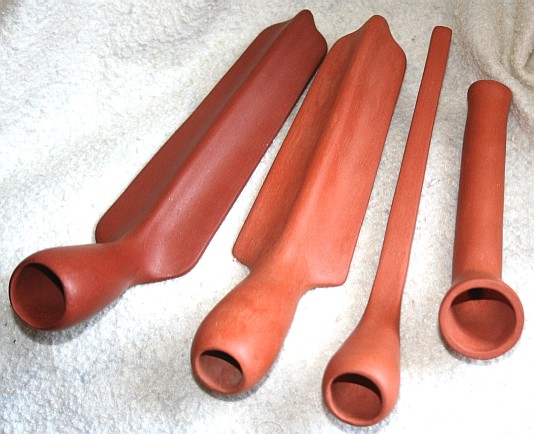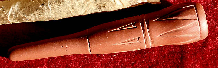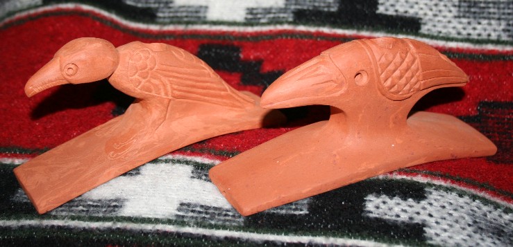The unique style found in these 'winged' pipes, sometimes refered to as trowel-pipes, is pleasing to the eye and makes for a strong pipe. Examples have been found among the Powhatans', and many other regional tribes' aboriginal village sites and sacred grounds. These attractive and fully functional pipes deserve to be honored in the manner of our forefathers of the great Indian Nations.