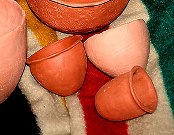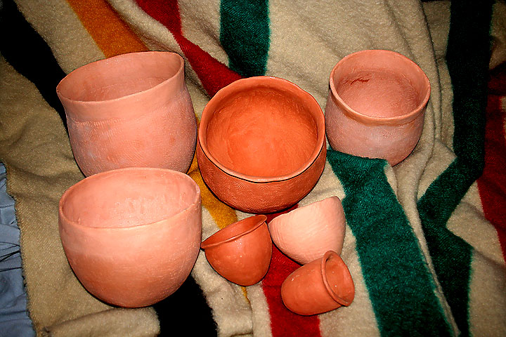 In the future we hope to include pottery wares made from local clays, tempered with shell, crushed quartz, fine gravel and other traditional tempering materials. For now, however, we are limiting our production to the use of commercial clays.