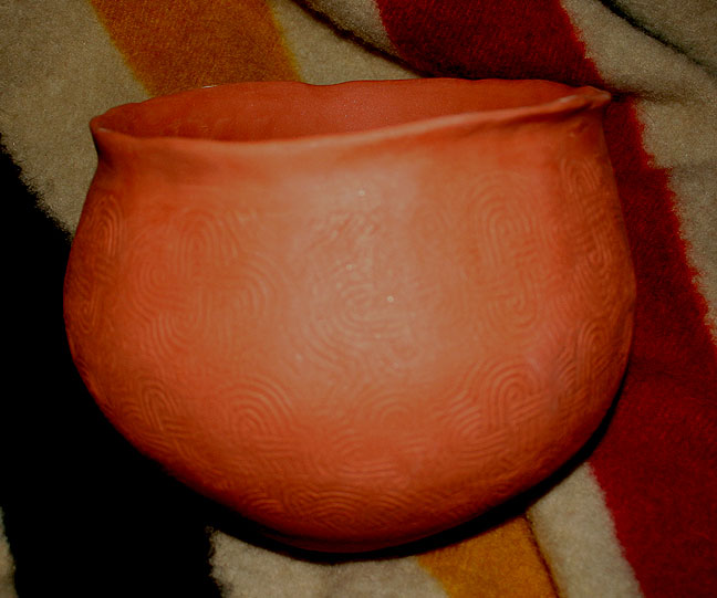 I have manufactured paddles for maliation of the clay, exhibiting the patterns and designs found on actual examples. I am hopeful of adding complicated stamped patterns reflecting a number of southeastern and mid-Atlantic cultures, cord- and net-marked styles as well as plain surfaced examples.