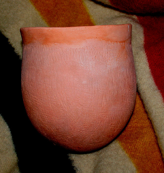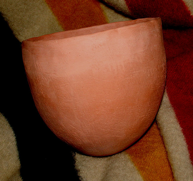 I intend these vesels to be usable for meal preparations, including cooking of foods to or above boiling point. Care and caution MUST be used when working with clay vessel-cooking. The bottoms of these vessels are rounded to conoid in shape to be most effective in distribution of heat from the fires' coals. Heat must be built up gradually ALL AROUND the pot, until cooking temperatures are reached. A prolonged cooling period is also advised, to prevent undo or sudden and uneven cooling. (We do not offer any warranty at this time, as we have no control over conditions of the vessels' use)