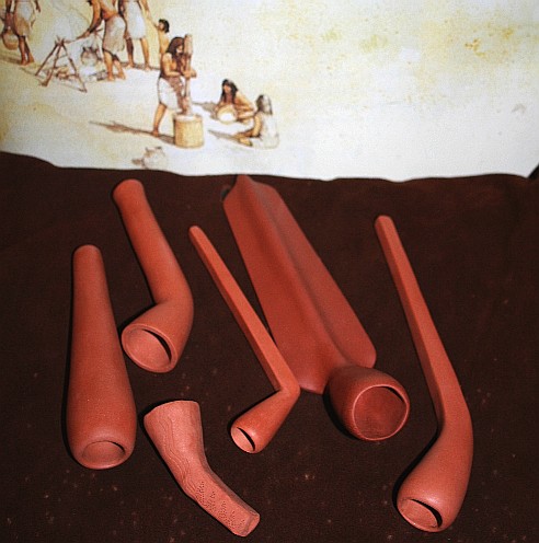 Reproductions of typical Woodland Period Tobacco pipes found throughout eastern Virginia