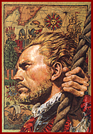 Spain monopolized the central and southern regions of the hemisphere while laying claim to portions of North America along the gulf and Atlantic coasts. In 1498, Sebastian Cabot may have coasted as far south as Virginia; Verazzano, in 1524 and Gomez a year later both landed within the Chesapeake Bay region, Gomez claiming formal possession of the land for the King of Spain. Throughout the rest of the 16th century Spanish slave-hunters from the West Indies raided Virginia and mid-Atlantic shores. Spain and Portugal divided the southern hemisphere between them--Brazil alone speaks Portugese as its national language and Spain's discoveries of vast gold and silver resources were mined and minted to excess, and shipments sent back to Spain sometimes fell prey to English privateers—-Pirates, AARRG!