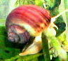 | Light Striped Purple (ivory version) | White bodied snails with a white to ivory shell base, and soft to bright purple stipes. They often have the appearance of a striped candy, and are quite nice looking animals. When the stripes are faint, they are hard to see at a distance and the snails sometimes look like very very light plain purples until seen in good light up close. | Rarest of all the purples. This is one of the newest colors, and therefore is only second to Red-Whites in being hard to come by. I suspect that most Red-Whites are now called Light Striped Purples because of confusion due to rarity. | ![]() image contributed by BugBarb |