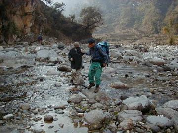 Day 2 – John and Bhadra crossing a gorge on a hand-made suspension bridge