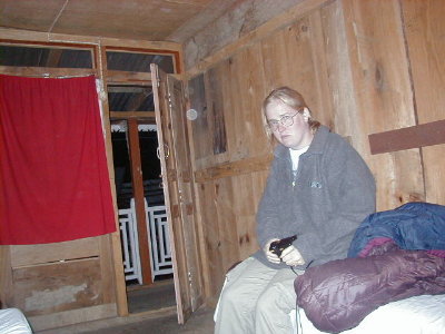 Day 2 – We spend the night at Nangathanti, where Darcy happily warms her feet by a wood stove