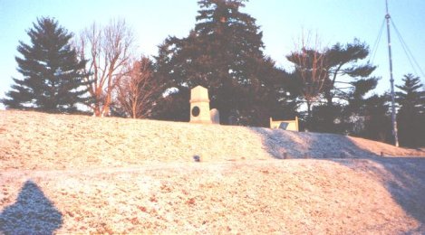 Another view of the reconstructed stonewall with Marye's Heights behind it..
