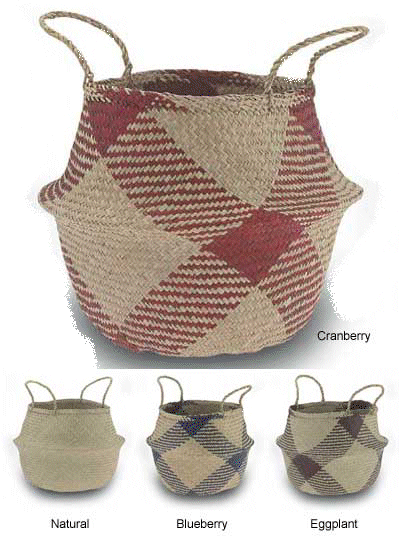 Traditionally, this basket has been used to carry rice from field to market. This salt-water reed is sustainably harvested, flattened by hand press, dyed and woven by village artisans in the community center and in their homes. Baskets are 14" center diameter, 12" approximate height when opened.