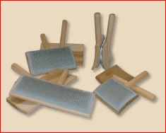 Maple handles, sealed with tung oil. Wool cards have bent