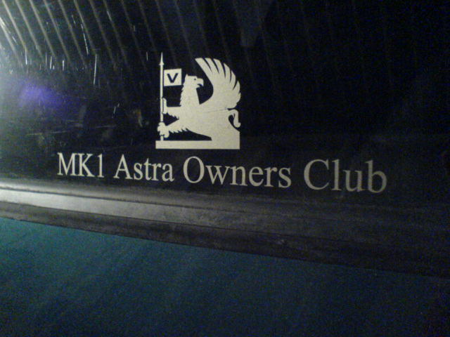 Another Mk1 Astra Owners Club sticker on the rear window.