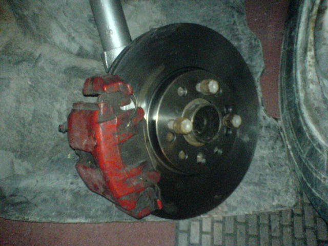 Trial fitting of a new set of 288mm 4 stud pattern brake discs with the Calibra Turbo front Calipers. Calibra Turbo discs are made with a 5 stud pattern and so would not swap directly onto the Astras 4 stud.