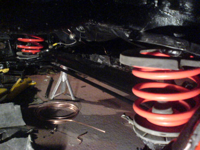 Fitting the Spax -60mm rear springs to the rear axle.