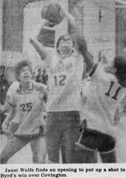 The Vinton Messenger reports in 1977 that "Byrd held steady to win the first championship anyone seemed to remember in the girls' teams' history of girls' basketball at Byrd."