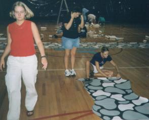 Ellenor, Anna, and Cielita desperately attempting to paint the silhouettes