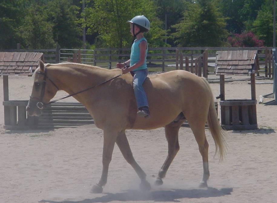Going quietly at the walk trot canter and started over 2' courses.