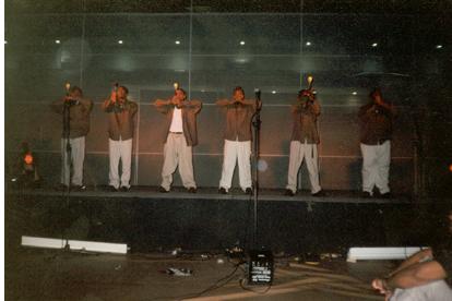 | Two Past Polari of VCU Colony Brothers Stefan White & Ramsey Bronyah | Brother Patterson (3rd from left) Dean of Charterline. Bro. Patterson (4H94) lead the Original Owtlaws into IOTALAND, March 4, 1999. | The VCU Owtlaws First Fall Block. If you missed this show, you missed owt. |