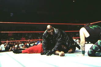 In this picture we see the end result of a Big Splash on Henry, as he lies lifeless under 550 pounds of Viscera.