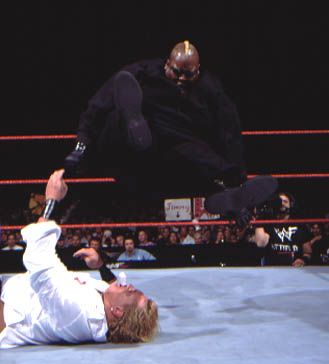 Viscera unleashes one of his most potent weapons: the leg-drop on counterpart Gangrel.