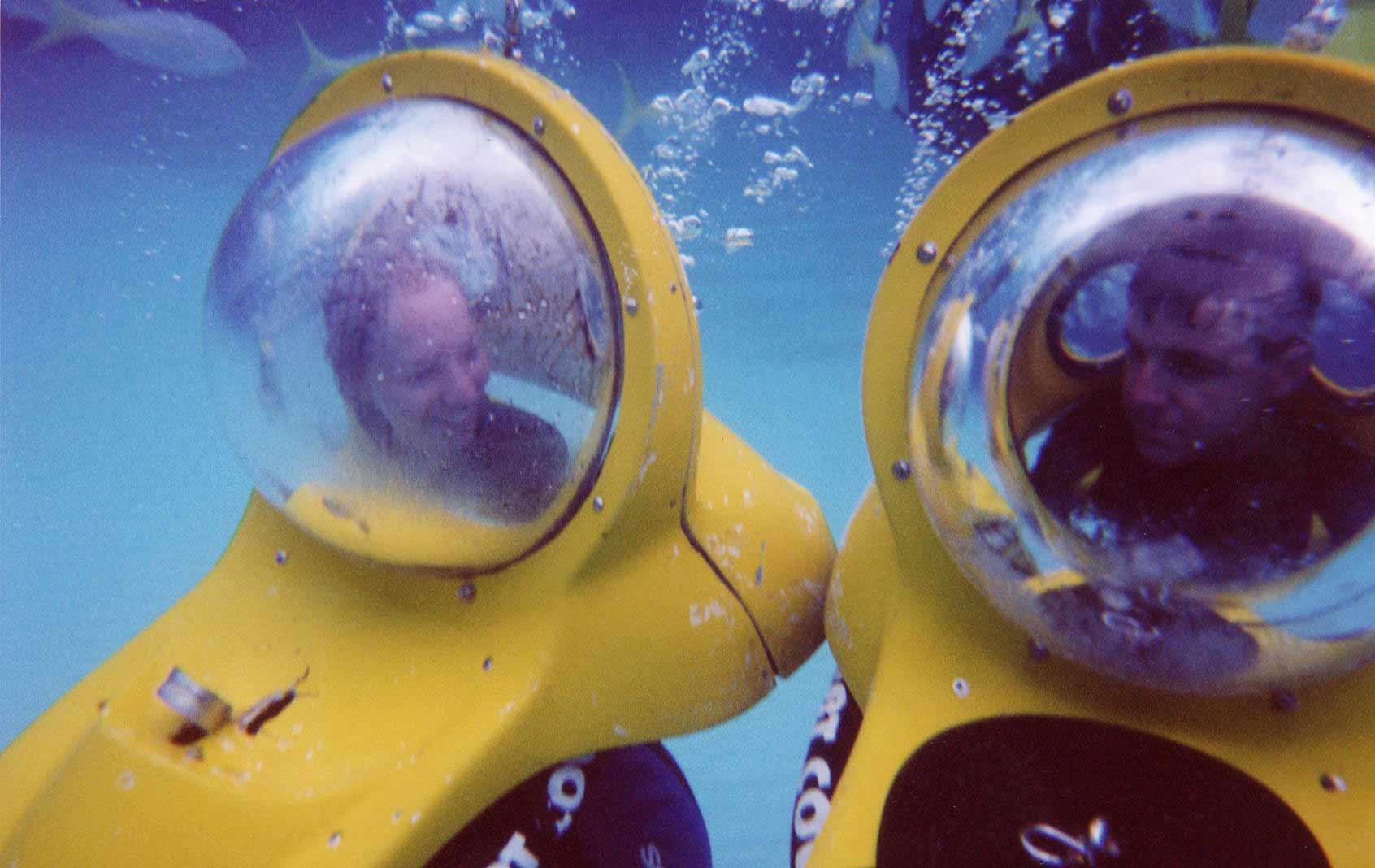 This picture was taken right before Jim's sub detached from the rest and plummeted to the ocean floor -- OK, it was only 35 feet, but he was still lucky not to get the Bends!