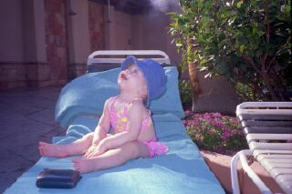 With 110 degree heat in the shade, we did lots of hanging out at the pool. MGM has 6 and a half acres of water pools, and we especially liked rafting down the "River Pool", It had a pretty strong current too!! Here is Emma taking a breather from the pool to catch some time in the sun!