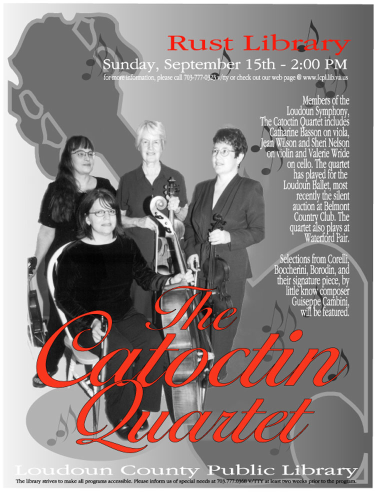 The Catoctin Quartet Home Page| Sheri Nelson| Jean Wilson| Catharine Basson| Valerie Wride| Tom Marks| Links|