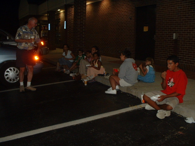 On the ninety four hour trip back to Wyandotte, we stopped at a McDonalds to use the bathroom (keep in mind that's what we had for dinner, also) and they were only open for the Drive-Thru. But the nice people opened up the doors to let us use the bathroom, and then we went through the Drive-Thru, ordered our food, and then sat on the curb and ate. Fun times.