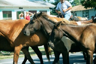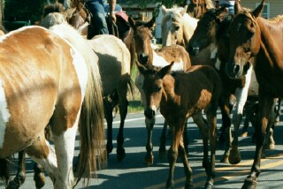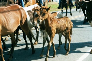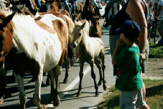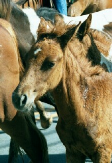 a dark bay foal (that's me!). You can't see my white socks because of the marsh mud, but they